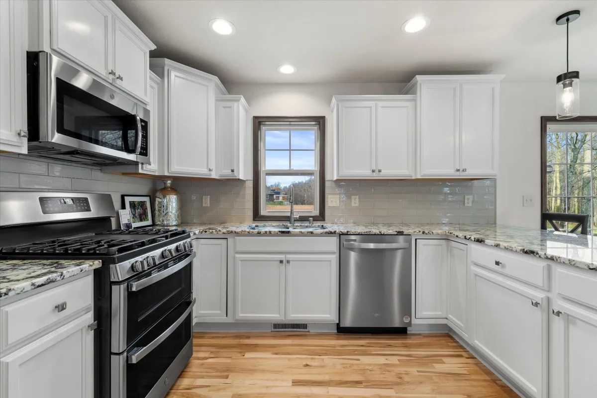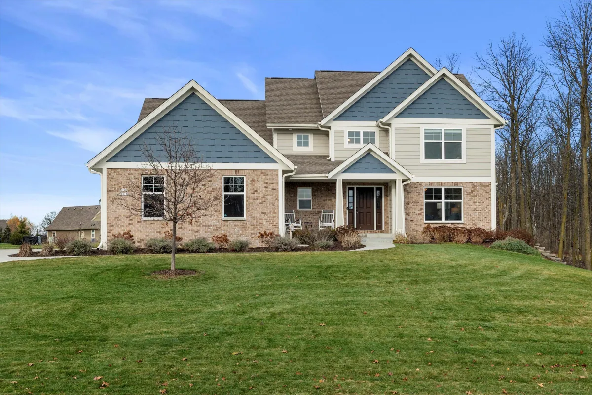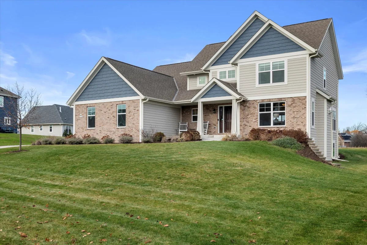 Nestled on almost half an acre this nearly new home in Menomonee Falls offers both tranquility and modern living. Overlooking an expansive 13-acre wooded backdrop, this stunning home seamlessly blends space, style, and functionality. Maple hardwood floors flow throughout much of the main level, complementing the pristine white kitchen with granite counters, tiled backsplash, stainless steel appliances. Ample storage space with pantry cabinets. Open-concept design boasts a 2-story foyer, an open staircase, and a cozy fireplace in the great room. The first floor features a versatile 5th bedroom or den with an adjacent full bath?ideal as a guest room or home office. Upstairs, retreat to the spacious primary suite with a walk-in closet and ensuite bath with duo vanities. Three more spacious bedrooms and 2nd full bath complete the upper level. The partially exposed and finished lower level offers a large rec room with a convenient half bath. Plenty of storage too. Enjoy the outdoors from the concrete patio overlooking the serene wooded backdrop. Additional highlights include tiled bathrooms, a tiled utility room, a mudroom, a 3-car side-load garage and a concrete driveway. This home offers a perfect combination of modern convenience and natural beauty?truly a must-see! Transferred seller is eager to complete their out-of-state move and ready to make a deal!