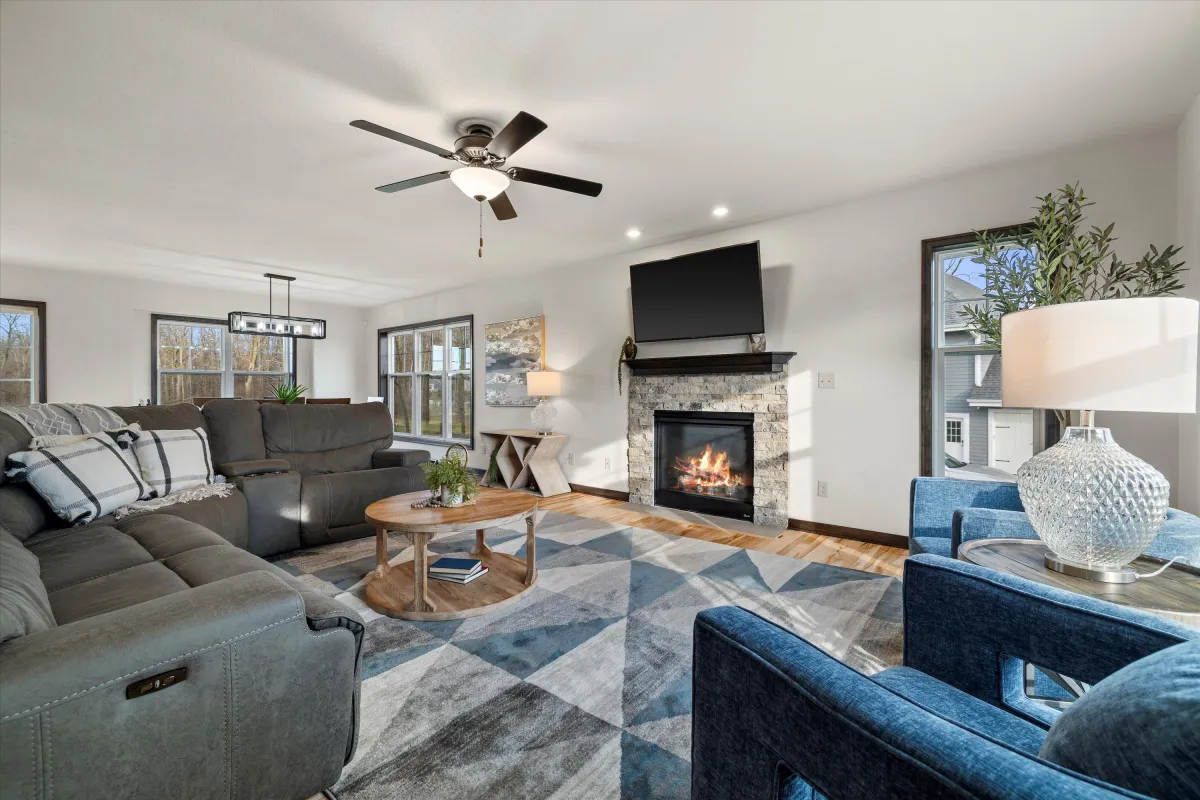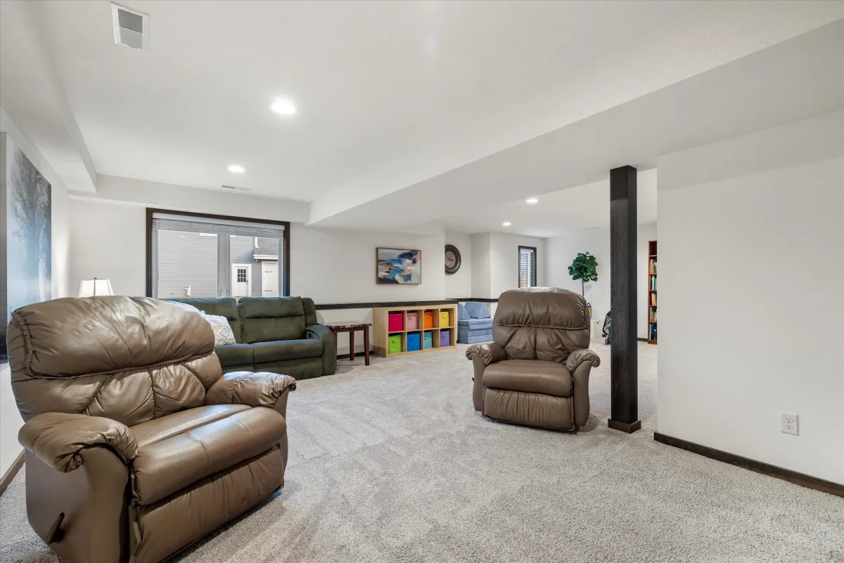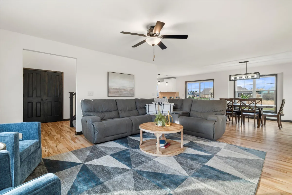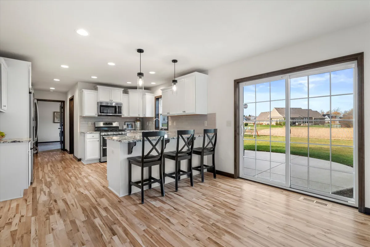 Nestled on almost half an acre this nearly new home in Menomonee Falls offers both tranquility and modern living. Overlooking an expansive 13-acre wooded backdrop, this stunning home seamlessly blends space, style, and functionality. Maple hardwood floors flow throughout much of the main level, complementing the pristine white kitchen with granite counters, tiled backsplash, stainless steel appliances. Ample storage space with pantry cabinets. Open-concept design boasts a 2-story foyer, an open staircase, and a cozy fireplace in the great room. The first floor features a versatile 5th bedroom or den with an adjacent full bath?ideal as a guest room or home office. Upstairs, retreat to the spacious primary suite with a walk-in closet and ensuite bath with duo vanities. Three more spacious bedrooms and 2nd full bath complete the upper level. The partially exposed and finished lower level offers a large rec room with a convenient half bath. Plenty of storage too. Enjoy the outdoors from the concrete patio overlooking the serene wooded backdrop. Additional highlights include tiled bathrooms, a tiled utility room, a mudroom, a 3-car side-load garage and a concrete driveway. This home offers a perfect combination of modern convenience and natural beauty?truly a must-see! Transferred seller is eager to complete their out-of-state move and ready to make a deal!